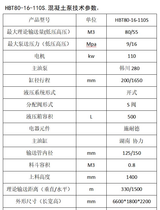 | 混凝土缸規(guī)格:缸徑*行徑Concretecylinder size:inner diameterxstroke | mm | 200x1650 | 200x1650 | 200x1650 | 200x1650 | ||||